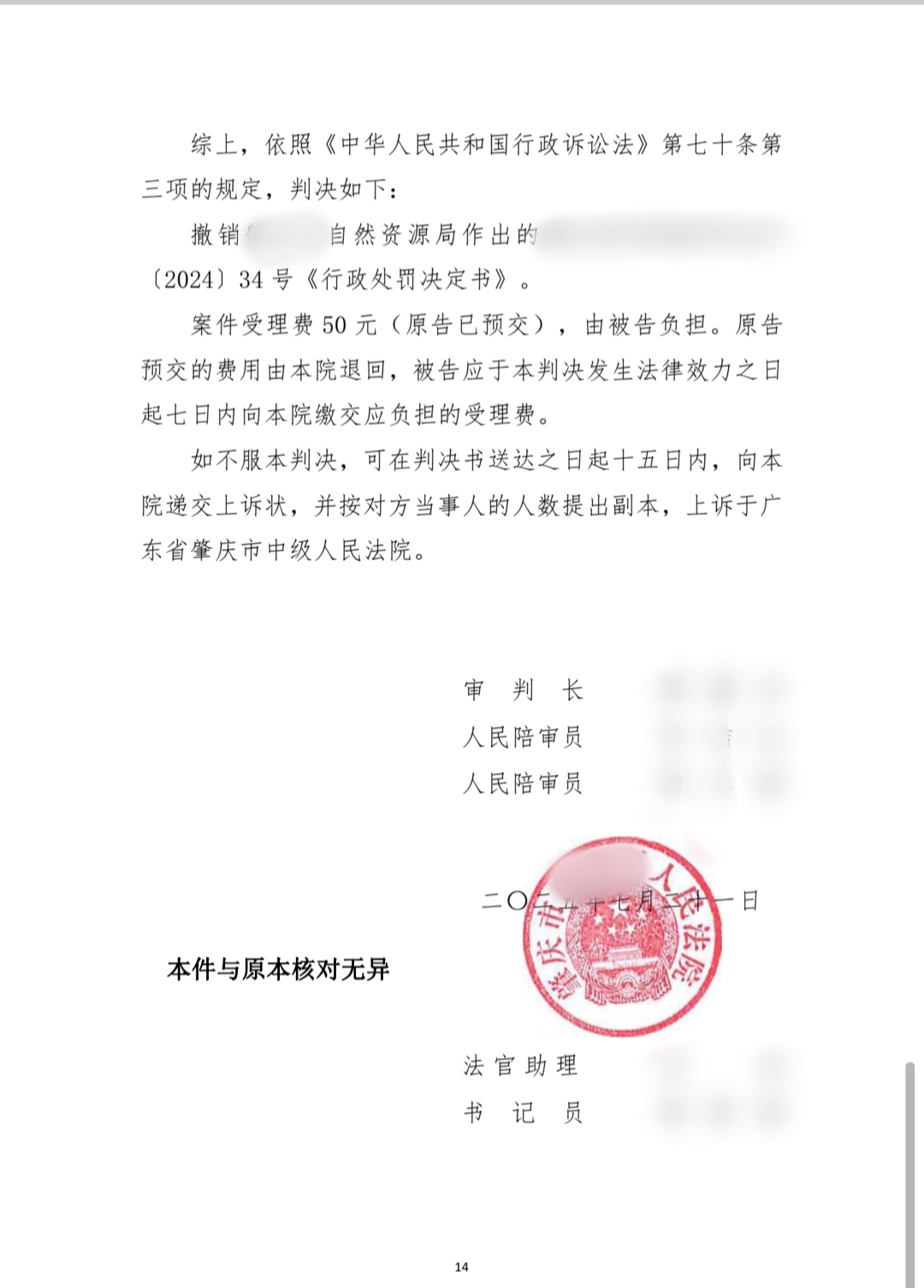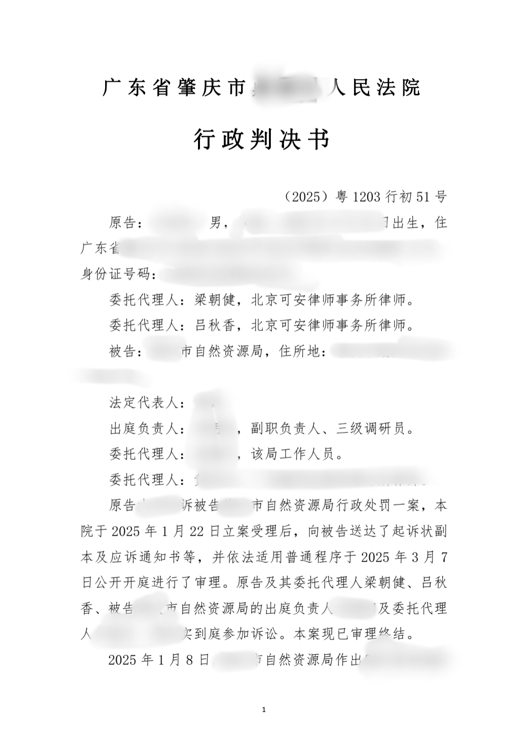 某区人民法院经审理,采纳了可安律师的意见,判决撤销市自然资源局作出的行政处罚决定书。