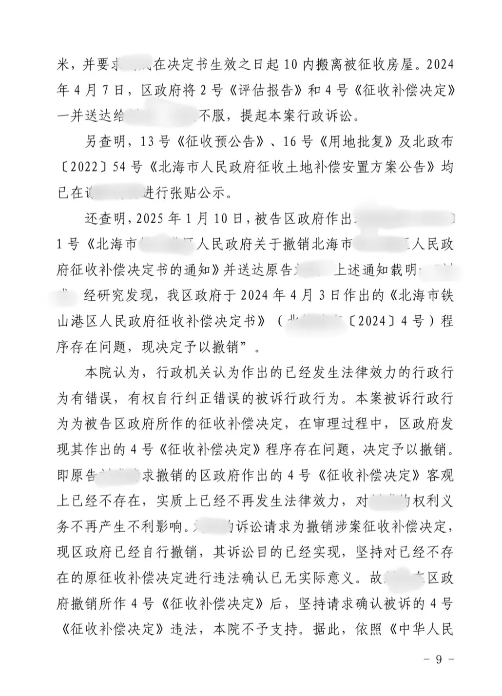 在审理过程中,面对可安律所提交的铁证与专业法律论证,区政府明确意识到原补偿决定的违法性。2025年1月10日,政府主动作出《关于撤销征收补偿决定书的通知》,依法撤销2024年作出的不合理补偿决定,并将通知送达刘先生。