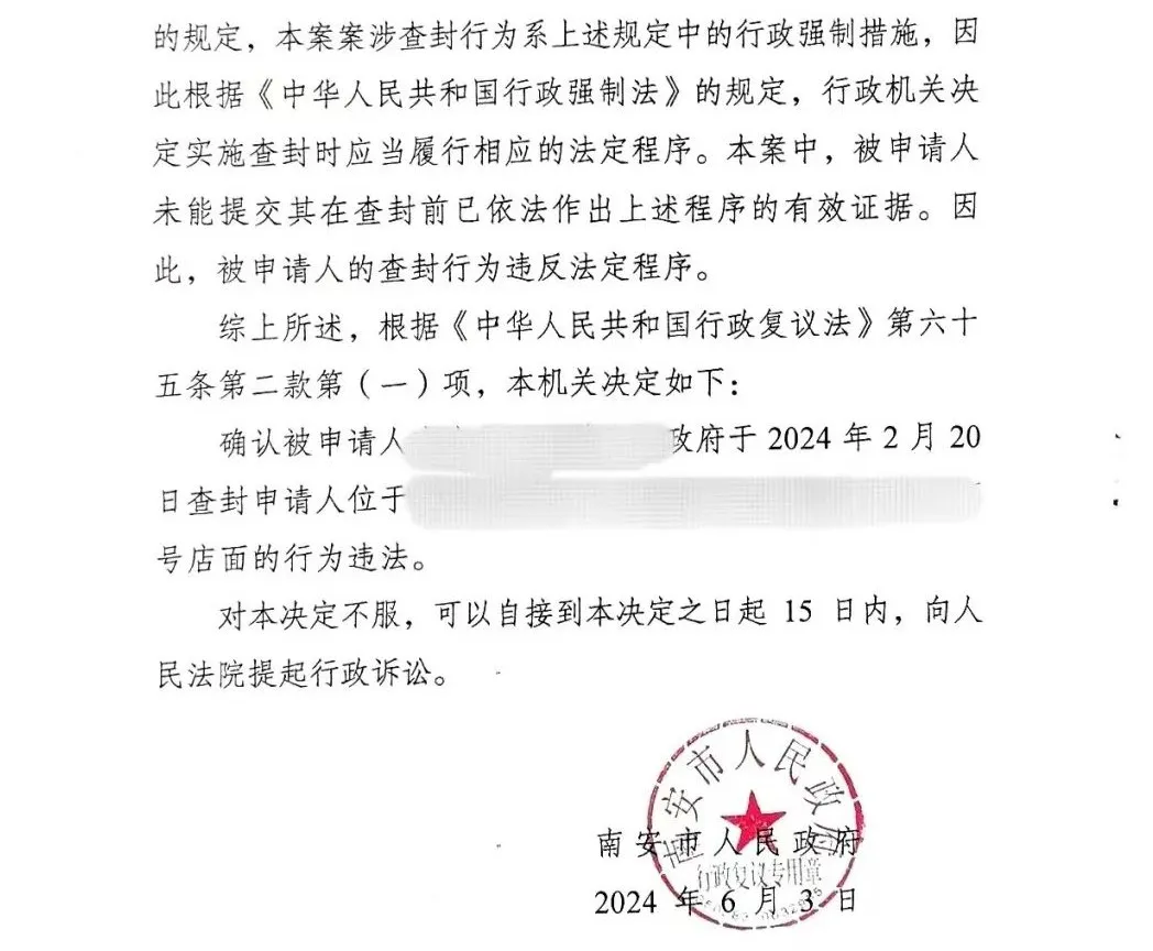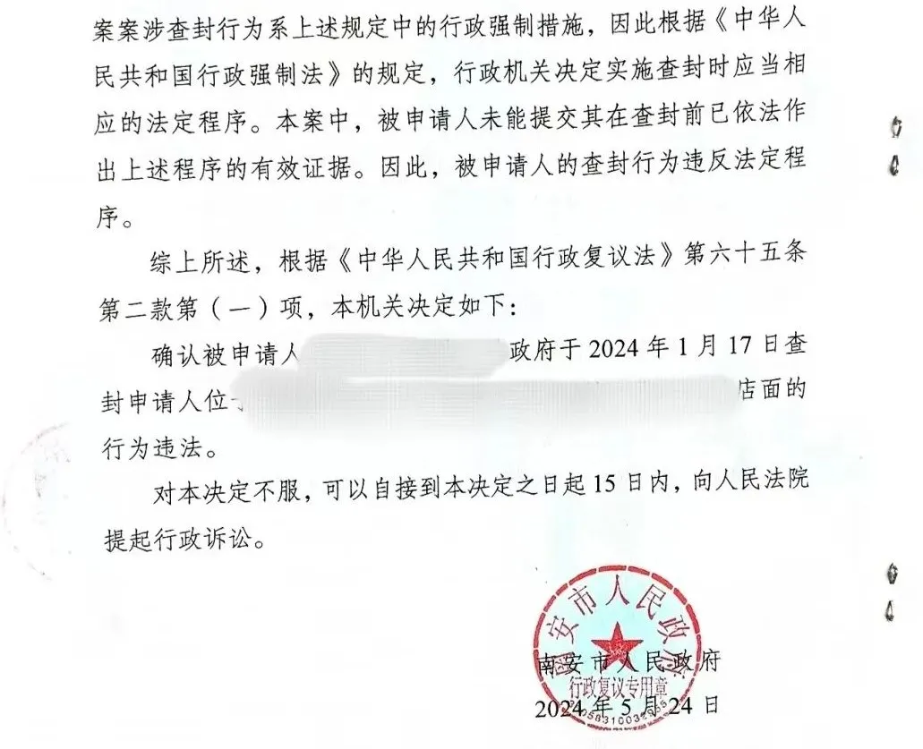 福建·南安 | 店面被反复查封逼迁,复议确认违法!