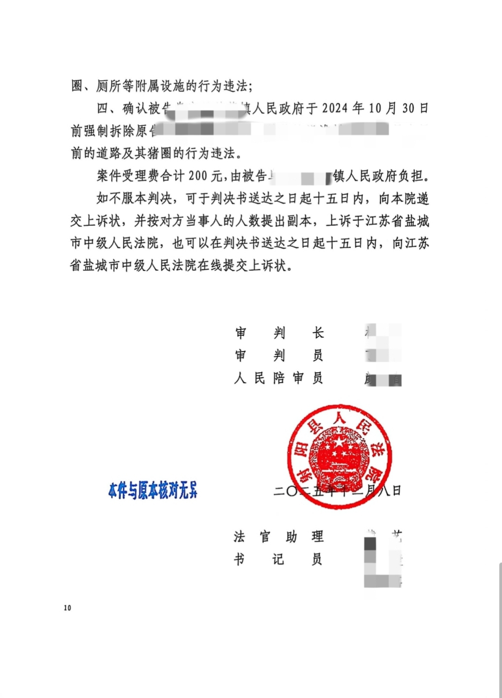 法院经审理,采纳可安律师的代理意见,作出判决:认定镇政府为案涉强拆行为的责任主体,其未补偿即强拆、未履行法定程序的行为,已构成违法,依法确认该强制拆除行为违法。